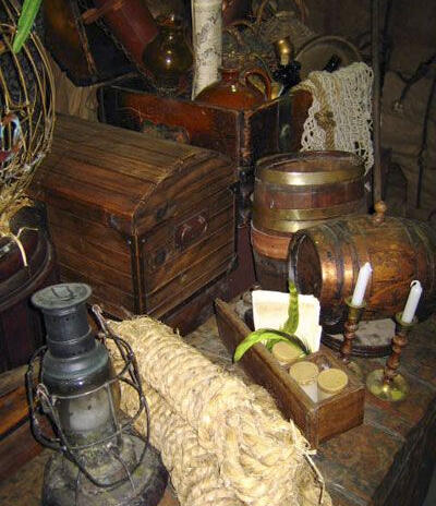 WATER-LOGGED BOOKS: All mostly legible (plus some with notes in their margins). Salt-stained, sea-soaked, and slightly warped, the collection spans everything from captain’s logs (with pages torn from some) and adventurer’s journals to common histories and well-thumbed novels of every genre. Want a recommendation? Ask one of the vendors! They’ve (probably) read them all, or at least they’ll say they have.