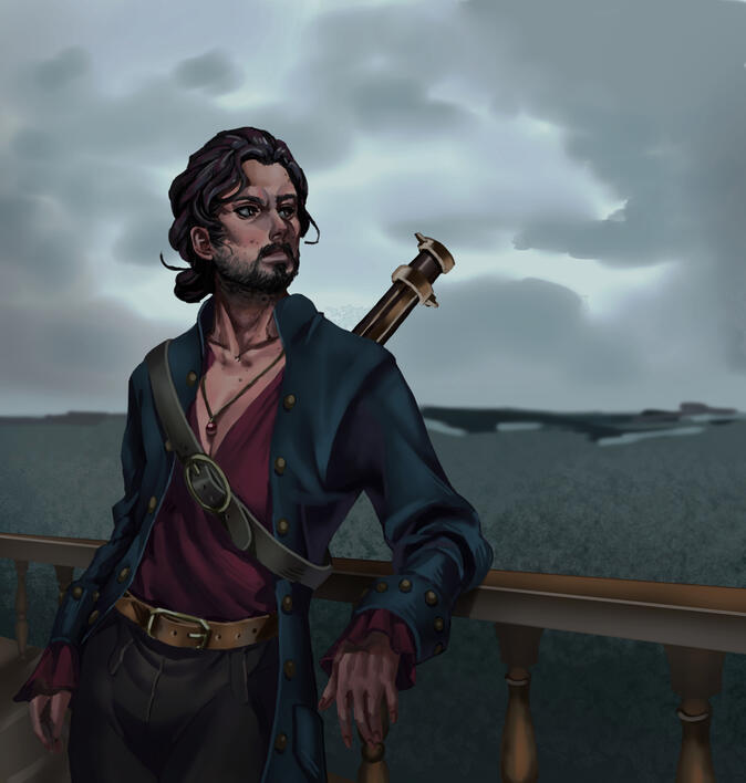 Ajhisi and Keoni were introduced to one another by Lars. Keoni, a lighthouse keeper, decided to take to the seas when he and Lars were teenagers. Occupying the role of ship's cook (and occasional, laughably unskilled "doctor"), Keoni was never entirely committed to the idea of being a pirate, not the way Ajhisi and Lars were. Ajhisi was almost immediately endeared to him, finding his softness refreshing.The three became partners at Ajhisi's initial suggestion, though the interest was very much shared between them all.After a particularly nasty shipwreck, Ajhisi and Keoni were marooned at sea on an island together while Lars made it away suspiciously scot-free.
