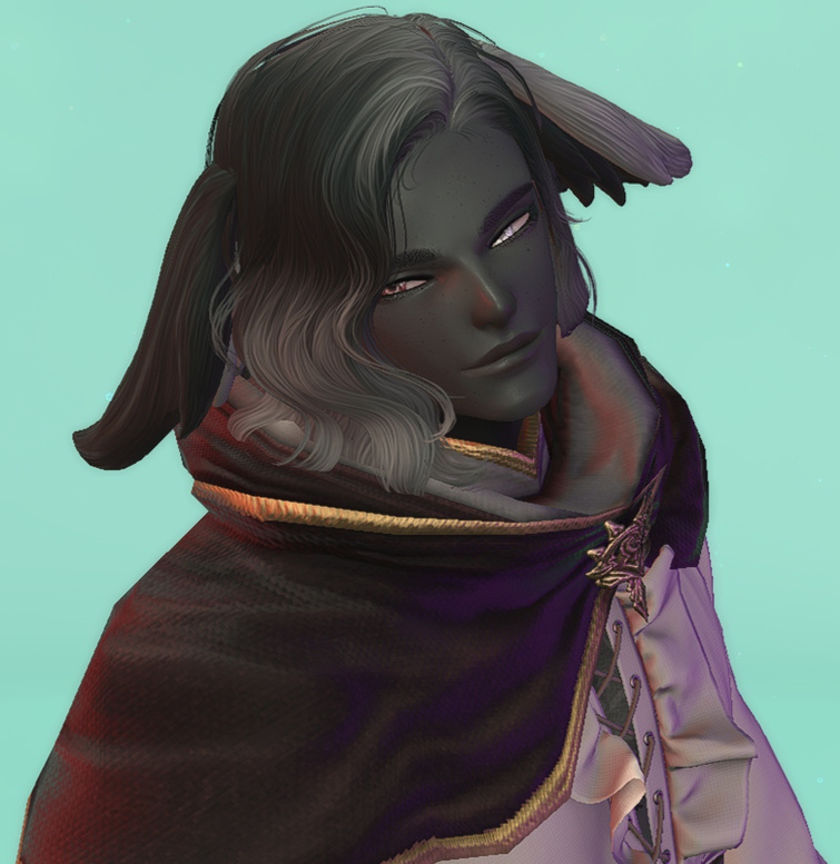 A Limsan man fortuitously present at the scene of a tavern brawl Ajhisi found herself entangled in. Initially a spectator, he joined the fray when it escalated, turning a two-person altercation into mayhem involving a dozen individuals. Amidst the altercation, Ajhisi was stabbed. Subsequently, with Ajhisi barely conscious, Lars brought her aboard his then-recently commandeered and sparsely crewed ship for recovery.She would later learn that there were so few members of the crew because while Lars was expert at commandeering, he was less than proficient when it came to inspiring others to follow him. If you asked Ajhisi, she'd (mostly) lovingly say it's the fault of his shitty personality.Ajhisi has yet to reunite with Lars following a shipwreck which left her and their other partner, Keoni, marooned and lost at sea. The circumstances of the wreck have left Ajhisi especially bitter toward Lars.